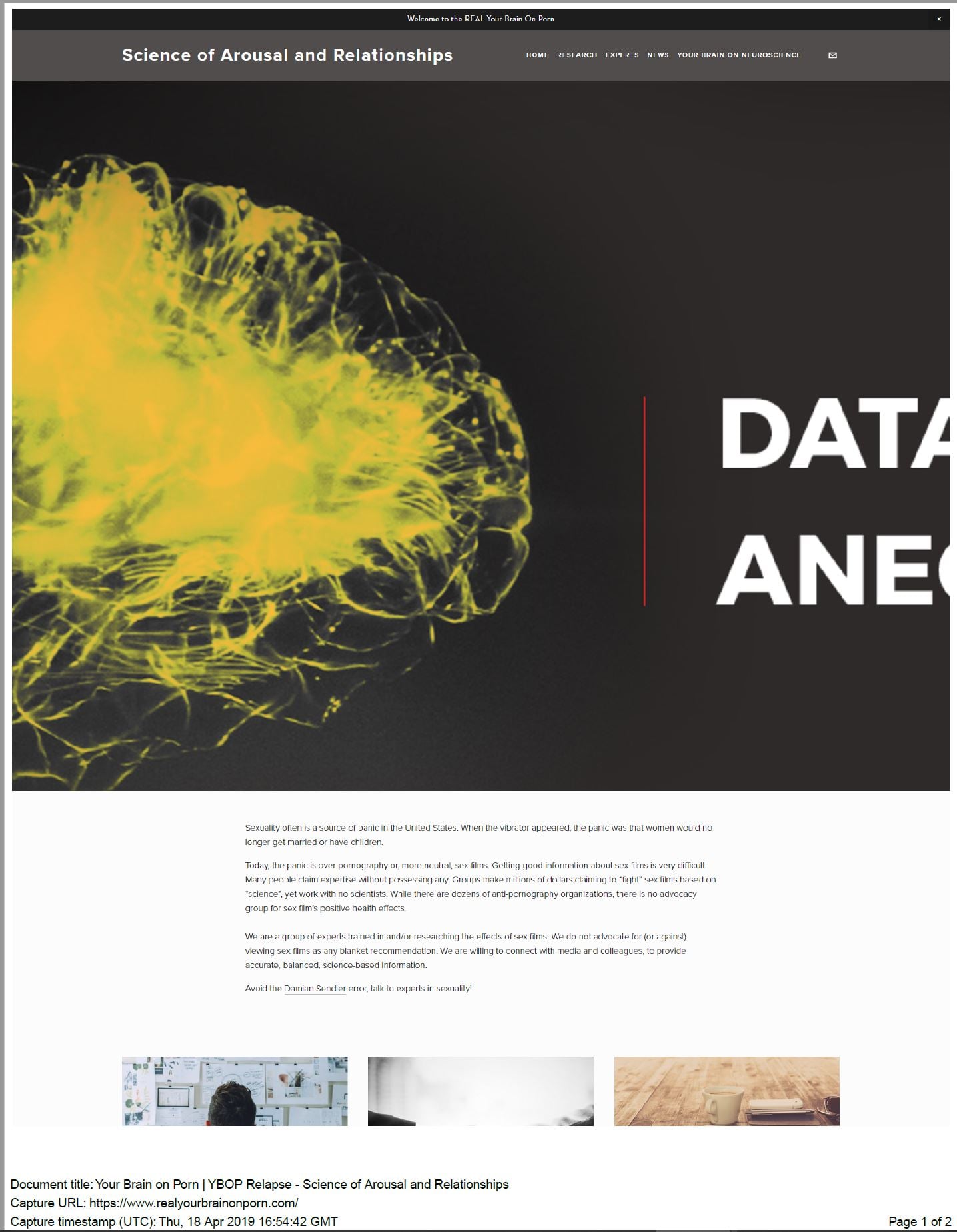 On May 1, 2019 the attorneys for the common-law owner of the trademarks “Your Brain On Born” and “YourBrainOnPorn.com” sent a cease and desist letter to all of those who appeared to be behind the infringing site (the “Experts”). A second letter also demands that Dr. Nicole Prause abandon her trademark-squatting application for the marks “Your Brain On Porn” and “YourBrainOnPorn.com.”