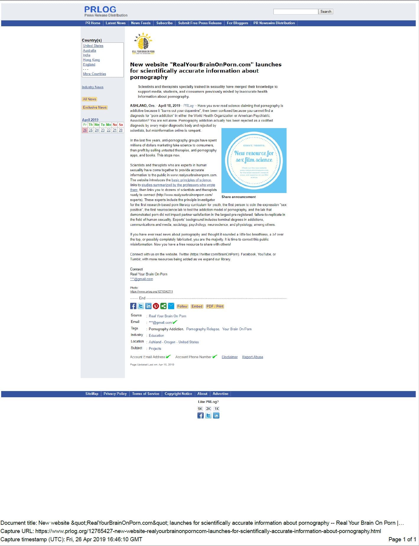 - Update: Legal actions revealed that Daniel Burgess is the current owner of the realyourbrainonporn.com URL. In March of 2018, Daniel Burgess appeared out of nowhere, engaging in targeted harassment and defamation of Gary Wilson and YBOP on multiple social platforms. Some of Burgess’s libelous claims and disturbed rantings are documented and debunked here: Addressing Unsupported Claims and Personal Attacks by Daniel Burgess (March, 2018) (Unsurprisingly, Burgess is a close ally of Nicole Prause).